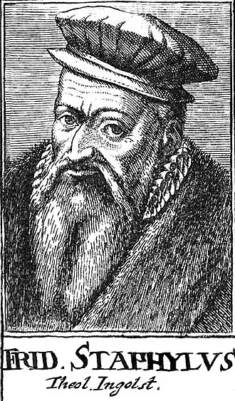 Friedrich Staphylus (né le à Osnabrück; mort le à Ingolstadt) est un théologien saxon.