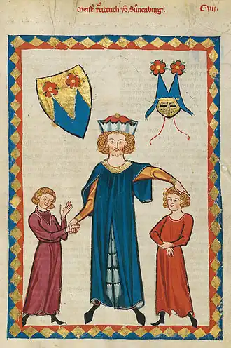 Friedrich von Sonnenburg tel que représenté dans le Codex Manesse (vers 1300)