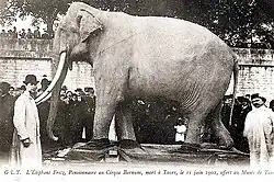 - ↑ « La mort d'un éléphant », Le Mémorial du Poitou, nos 49, 53e année, , p. 2 (lire en ligne).