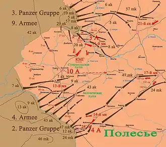 - et la 4e armée (les 28e corps de fusiliers et 14e corps mécanisé) du général V. I. Korobkov (ru) autour de Brest-Litovsk.