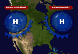 - ↑ (en) Andrew Rosenthal, « Gloomy Weather? It Might Be A Back Door Cold Front » (consulté le )