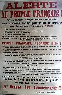 En mai 1936, le quotidien communiste L'Humanité publie des extraits d'un compte rendu sténographique d'une réunion des chefs du Front national portant sur la guerre d'Éthiopie ; ils s'interrogent sur les moyens qu'ils peuvent utiliser pour combattre les sanctions contre l'Italie et appuyer le président du conseil Pierre Laval, hostile à ces sanctions. La réunion est présidée par le général Paul Lavigne-Delville. Y participent Taittinger, Jean Renaud, Trochu, Georges Calzant, Fromentin, Richard, Darquier de Pellepoix[23],[24].