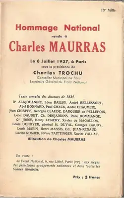 - ↑ P. Taittinger, "Il faut constituer le Front national", La Liberté, 24 janvier 1933