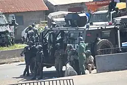 - ↑ « Manif du FNDC. La police dresse son bilan : 7 agents des forces de l’ordre blessés, 7 individus interpellés », sur La Guinée info - Les informations sur la Guinée en un seul clic, (consulté le )