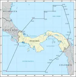 - À partir du point situé dans les coordonnées 5° 00′ 00″ N, 79° 52′ 00″ O il est suivi de son parallèle au point de coordonnées 5° 00′ 00″ N, 84° 19′ 00″ O où la délimitation commence avec le Costa Rica.