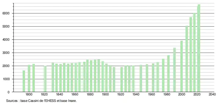 - ↑ Fiches Insee - Populations de référence de la commune pour les années 2006, 2007, 2008, 2009, 2010, 2011, 2012, 2013, 2014, 2015, 2016, 2017, 2018, 2019, 2020, 2021 et 2022.
