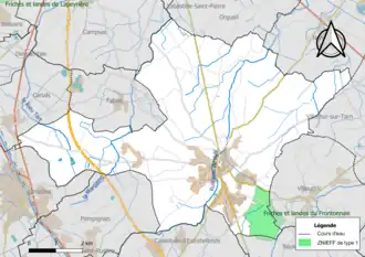 L’inventaire des zones naturelles d'intérêt écologique, faunistique et floristique (ZNIEFF) a pour objectif de réaliser une couverture des zones les plus intéressantes sur le plan écologique, essentiellement dans la perspective d’améliorer la connaissance du patrimoine naturel national et de fournir aux différents décideurs un outil d’aide à la prise en compte de l’environnement dans l’aménagement du territoire. Une ZNIEFF de type 1[Note 2] est recensée sur la commune[19] : les « friches et landes du Frontonnais » (183 ha), couvrant 3 communes du département[20].