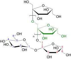 L'inuline, un fructane accumulé par les plantes de la famille des Asteraceae, est constituée de résidus fructose liés par des liaisons osidiques β(2→1).
