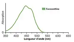 La fucoxanthine est un pigment xanthophylle de la famille des caroténoïdes. Il donne leur couleur brune à de nombreuses algues. Elle est notamment contenue dans le wakame, algue utilisée dans la cuisine japonaise. La caractéristique principale de ces pigments est leur faculté à absorber les longueurs d'onde sur l'intervalle 500-560 nm, couvrant la plage de couleur bleu-vert sur le spectre de la lumière visible.