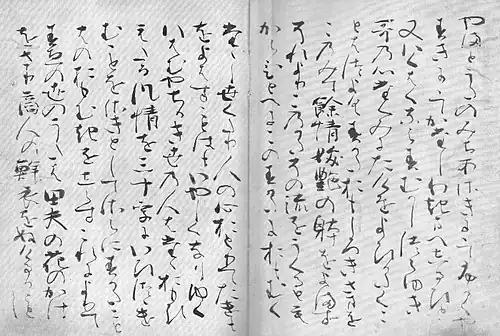 Ici, l'« ancienne diction » sont des phrases et des mots issus des « Trois Collections » : la Kokinshū, la Gosen Wakashū et la Shūi Wakashū mais pas beaucoup plus anciens que cela (par exemple, la diction du Man'yōshū était considérée trop ancienne)[69]. Teika écrit dans son Maigetsusho que les meilleurs poèmes sont spontanés et originaux mais néanmoins traditionnels :