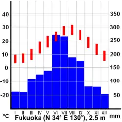 - ↑ (ja) « 福岡 平年値(年・月ごとの値) 主な要素 », Agence météorologique du Japon (consulté le ).