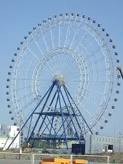 - ↑ (ja) « 解体中の観覧車支柱が倒壊…クレーンも転倒、1人けが 福岡 (Les soutiens de la roue s'effondrent : les grues se renversent, blessant une personne) », Japon, Sankei Shinbun (version du sur Internet Archive).