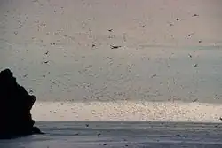 Pendant la saison de nidification, les colonies peuvent atteindre plusieurs dizaines de milliers d'oiseaux, comme sur les îles de Saint-Kilda[6].