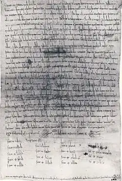 - Confirmation des biens que l'abbaye de Saint Denis possédait à Volmerange(-les-mines) (Vualanbrega in pago Moslicinse), Lecem in pago Hasbanito (?), et Lièpvre (Lepraham) - Bibliothèque nationale (K17, no 4, réf. 12367, original scellé)