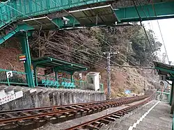Vue du funiculaire dans la gare haute d'Afurijinja. | ||