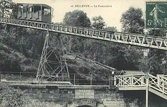 .Le funiculaire de Bellevue, situé à Meudon dans le département des Hauts-de-Seine, est un funiculaire aujourd'hui disparu qui reliait de 1893 à 1934 la gare de Bellevue-Funiculaire[1] sur la ligne de Puteaux à Issy-Plaine (arrêt Brimborion de l'actuelle ligne 2 du tramway d'Île-de-France), à la gare de Bellevue, sur la ligne de Paris-Montparnasse à Versailles-Chantiers.