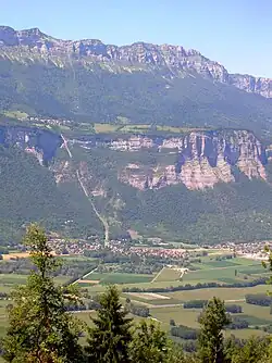 ![]() Le funiculaire et la vallée du Grésivaudan, vue prise depuis le sentier du Pal de Fer. |