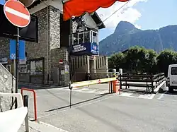 ![]() Vue d'une cabine à la station intermédiaire du mont Fréty. |
