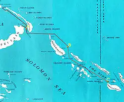 L'amiral King, Commandant-en-Chef de la Flotte des États-Unis, obtint, de son côté, de mener une opération dans le secteur des îles Salomon, où la présence japonaise à Tulagi et à Guadalcanal, pouvait constituer une autre menace sur la ligne de communication Hawaï-Australie. Le , les U.S. Marines ont débarqué sur la côte nord de Guadalcanal et à Tulagi, où les combats ont été violents, sous la protection de l'USS Wasp pour Tulagi, des USS Enterprise et Saratoga, pour Guadalcanal[15].