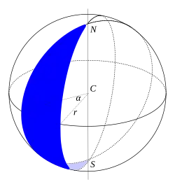 Un fuseau sphérique est la portion de sphère interceptée par un dièdre dont l'arête passe par le centre du cercle.