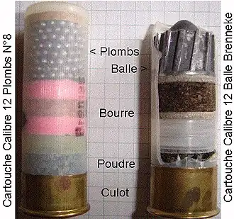 Des cartouches contenant une balle unique, d'un type bien spécifique, peuvent également être employées dans un fusil de chasse. Leur structure est similaire à celle des cartouches à plombs à la différence que les plombs sont remplacés par un projectile unique.
