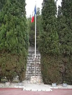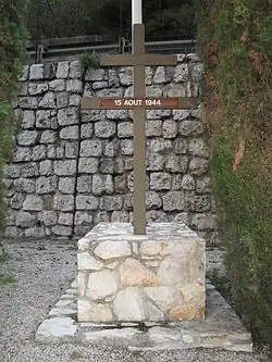 Vue de la croix de Lorraine avec la date du 15 août au carré des Fusillés de l'Ariane à Nice.