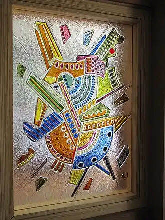Poser dessus des morceaux de verre : en plaque, concassés, fritte, fils, de différentes couleurs en fonction du motif souhaité. Les verres doivent être testés compatibles entre eux.