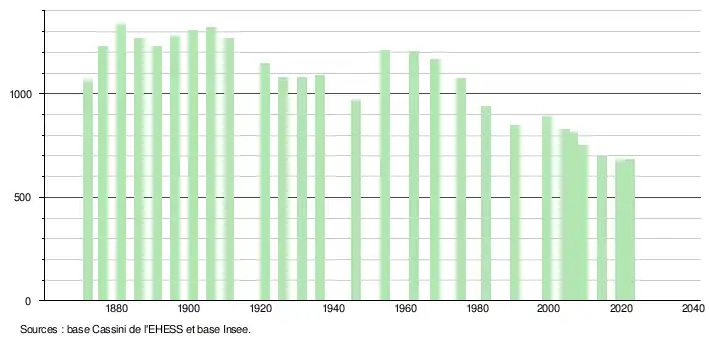 - ↑ Fiches Insee - Populations de référence de la commune pour les années 2006, 2007, 2008, 2009, 2010, 2011, 2012, 2013, 2014, 2015, 2016, 2017, 2018, 2019, 2020, 2021 et 2022.