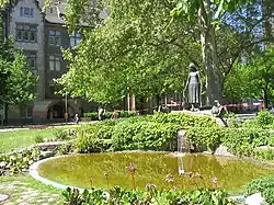Une statue de bronze de la Gänseliesel se trouve au-dessus de la fontaine devant l'hôtel de ville, œuvre en 1937 de Julius Haigis.