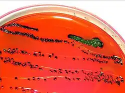 Les colonies suspectes de Escherichia coli sont celles qui présentent après 18 à 24h d'incubation l'aspect caractéristique dit « en dos de scarabée » : coloration bleu-noir avec des reflets verts métallisés, limitée à la colonie et ne s'étendant pas au milieu environnant. Cet aspect, qui traduit l'acidification intense et rapide du lactose et/ou du saccharose, n'a cependant qu'une valeur d'orientation[6]. D'autres tests sont nécessaires pour confirmer l'identification.