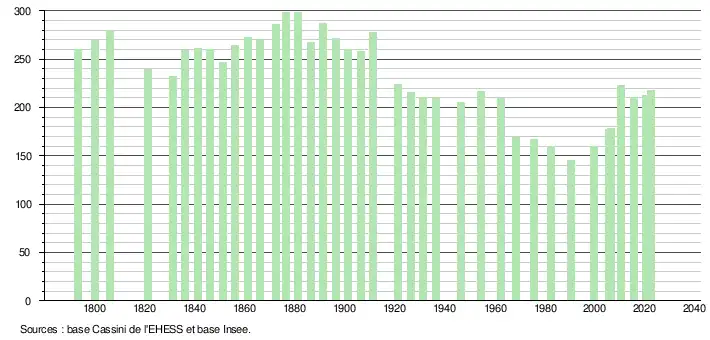 - ↑ Fiches Insee - Populations de référence de la commune pour les années 2006, 2007, 2008, 2009, 2010, 2011, 2012, 2013, 2014, 2015, 2016, 2017, 2018, 2019, 2020, 2021 et 2022.