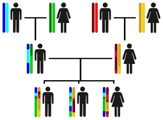 Les autres chromosomes, autosomes, et chromosome X chez la femme, partagent leur matériel génétique (on appelle ceci les enjambements qui conduisent aux recombinaisons durant la méiose, un type spécial de division cellulaire qui se produit dans le cours de la reproduction sexuée. En effet, ceci signifie que le matériel génétique de ces chromosomes sera mélangé en quelques générations, et donc toute nouvelle mutation est transmise par hasard des parents à leur progéniture.