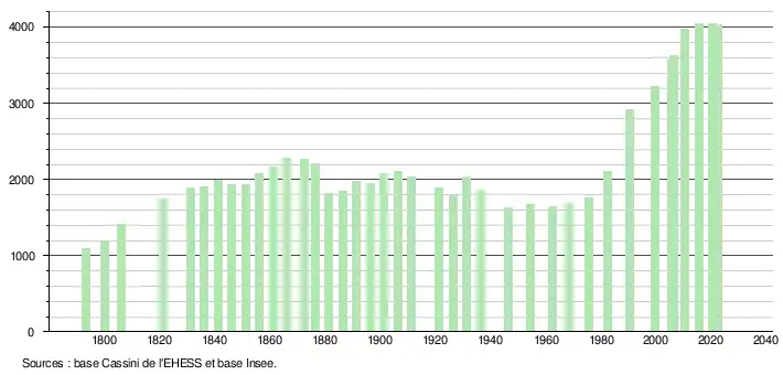 - ↑ Fiches Insee - Populations de référence de la commune pour les années 2006, 2007, 2008, 2009, 2010, 2011, 2012, 2013, 2014, 2015, 2016, 2017, 2018, 2019, 2020, 2021 et 2022.