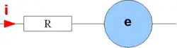 On peut faire le schéma électrique équivalent suivant avec une résistance R qui symbolise les pertes dans les câbles et une fem voir Loi de Lenz.