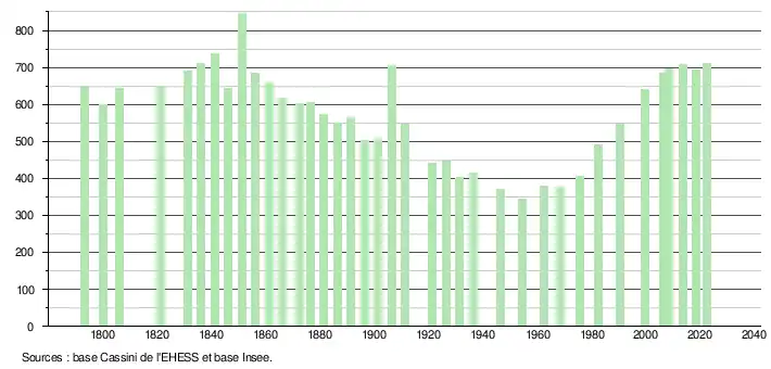 - ↑ Fiches Insee - Populations de référence de la commune pour les années 2006, 2007, 2008, 2009, 2010, 2011, 2012, 2013, 2014, 2015, 2016, 2017, 2018, 2019, 2020, 2021 et 2022.