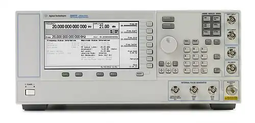 Les générateurs de signaux radio et micro-ondes sont utilisés pour tester les composantes, les récepteurs et les systèmes de test dans une grande variété d'applications, notamment les communications cellulaires, le WiFi, le WiMAX, le GPS, la radiodiffusion audio et vidéo, les communications par satellite, le radar et la guerre électronique. Les générateurs de signaux radio et micro-ondes ont normalement des caractéristiques et des capacités similaires, mais se différencient par leur gamme de fréquences. Les générateurs de signaux radio vont généralement de quelques kHz à 6 GHz, tandis que les générateurs de signaux micro-ondes couvrent une gamme de fréquences beaucoup plus large, de moins de 1 MHz à au moins 20 GHz. Certains modèles vont jusqu'à 70 GHz avec une sortie coaxiale directe, et jusqu'à des centaines de GHz lorsqu'on les utilise avec des modules de source de guide d'ondes externes. On peut également classer les générateurs de signaux radio et micro-ondes comme générateurs de signaux soit analogiques, soit vectoriels.