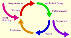 - Une autre méthode consiste à effectuer les travaux d'analyse, de programmation, de test et de validation tout d'abord sur un jeu restreint de fonctions du logiciel, puis une nouvelle itération servira à répéter ces opérations sur un jeu de fonctions plus raffiné, et ainsi de suite, selon un cycle en spirale.