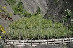 | Lit de plants et/ou plançons/ cordons | Ouvrage linéaire, parfois à rôle de butée, constitué d’un alignement de boutures, plançons et/ou plants, disposés selon une ou plusieurs courbes de niveau. |
