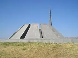 Le premier monument dédié au génocide des Arméniens a été érigé sous forme d'une chapelle, dans les années 1950, sur le territoire du Catholicossat arménien de Cilicie de la ville d'Antélias au Liban. Le monument renferme une collection d'ossements humains provenant des fosses communes arméniennes du désert de Syrie. En 1965, sur le territoire du catholicossat d'Etchmiadzin un monument composé de multiples khatchkars a été construit en mémoire des victimes du génocide. Au début des années 1960, les diasporas des communautés arméniennes des différents pays ont commencé à édifier des monuments commémorant le génocide. Cela a provoqué des protestations du gouvernement turc. On les trouve à Montebello, à Sydney, São Paulo et Buenos Aires, partout où sont installées des communautés arméniennes. En 1990, une chapelle commémorative a été inaugurée dans le désert de Deir ez-Zor en Syrie. Elle restait le seul monument édifié sur une des lieux mêmes du génocide arménien[34]. Ce Mémorial du génocide arménien de Deir ez-Zor a été dynamité, le , par d'anciens membres du Front al-Nosra ayant prêté allégeance à l'État islamique [35],[36],[37].