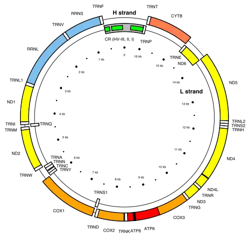 De plus, chez l’humain, il ne compte que 37 gènes (alors que l’ADN humain en compte quelque 25 000). Il est en général mieux conservé et évidemment, beaucoup plus vite décodé. En effet, contrairement à l’ADN humain qui est un assemblage de la moitié des gènes de la mère et de la moitié des gènes du père (donc du quart de chaque grand-parent ou encore du huitième de chaque arrière-grand-parent, etc.) rendant très difficile l’établissement de la filiation au-delà de quelques générations, l’ADN mitochondrial n’est normalement transmis que par la mère, qui le tient elle-même de sa mère qui le tient de la sienne, etc. Cela simplifie donc énormément l’étude des filiations mère-enfant et la datation des lignées. L’ADN mitochondrial des mâles provient de leur mère et n’est normalement pas transmis à la génération suivante.