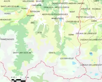 - ↑ Stephan Georg, « Distance entre Génos et Bagnères-de-Bigorre », sur fr.distance.to (consulté le ).