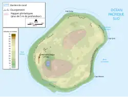 La baie d'Anibare est née d'un affaissement sous-marin du bord Est du volcan survenu à l'Holocène[8] tandis que la lagune Buada provient de la dissolution et de l'affaissement du calcaire.