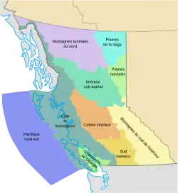 La Colombie-Britannique comprend cinq grandes régions physiographiques[3] :
