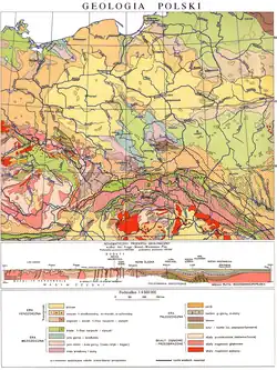 La structure géologique de la Pologne a été façonnée d'une part par la collision entre les plaques continentales européenne et africaine au cours des 60 derniers millions d'années, et d'autre part par les glaciations quaternaires de l'Europe du Nord. Ces deux processus ont notamment impacté les Sudètes et les Carpates. Le paysage morainique et lacustre du nord de la Pologne contient des sols principalement constitués de sable ou de limon, tandis que les vallées fluviales glaciaires du sud contiennent souvent du loess. Les hautes terres de Cracovie-Czestochowa, les Piénines et les Tatras occidentales sont constituées de calcaire, tandis que les Hautes Tatras, les Beskides et les monts des Géants sont constituées principalement de granite et de basalte. Le Jura cracovien date du Jurassique.