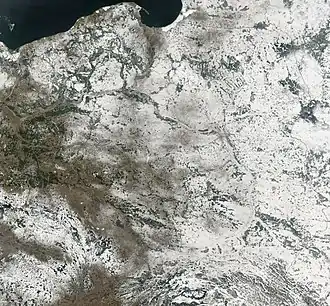 | Frontières | 2 888 km (Biélorussie 605 km, République tchèque 658 km, Allemagne 456 km, Lituanie 91 km, Russie (oblast de Kaliningrad) 206 km, Slovaquie 444 km, Ukraine 428 km) |
