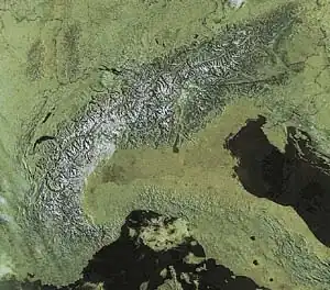 - ↑ Thomas M. Poulsen, Aubrey Diem, Paul Veyret, « Alps » in Encyclopedia Britannica, mis à jour le 29 octobre 2020, consulté le 23 août 2022 [lire en ligne]
