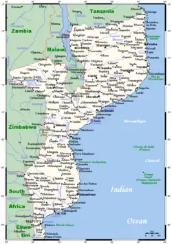 Le Mozambique est un pays d'Afrique australe riverain de l'Océan Indien, d'une superficie totale de 799 380 km2 (dont 786 380 km2 terrestres et 13 000 km2 de lacs et cours d'eau). Il est soumis à un climat tropical.