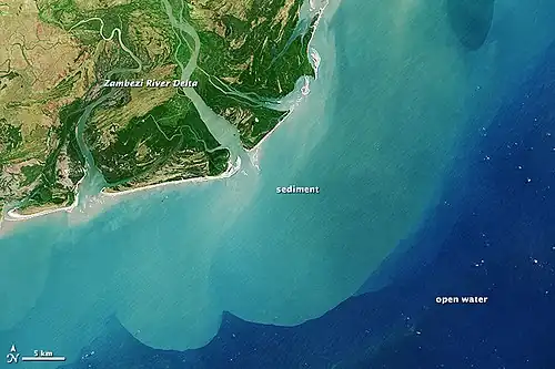 Au Nord, l'immense delta du Zambèze se déverse dans l’océan. Au-delà, la côte est parsemée de petites îles essentiellement d'origine corallienne. L'une de ces îles est Mozambique, qui est abritée au nord par la baie de Conducia. Plus au nord encore, on trouve deux larges baies, la Baie de Fernão Veloso et la baie de Memba. Le contraste entre les côtes nord et sud du Mozambique est extrême : au nord, la côte est très déchiquetée, abonde en promontoires rocheux et falaises alors que, comme on l'a signalé plus haut, il y a au large un chapelet d'îles presque ininterrompu. La côte sud du Mozambique est une plaine sableuse ponctuée par les mangroves d'Afrique orientale. Les ports, rares, y sont de taille très modeste.