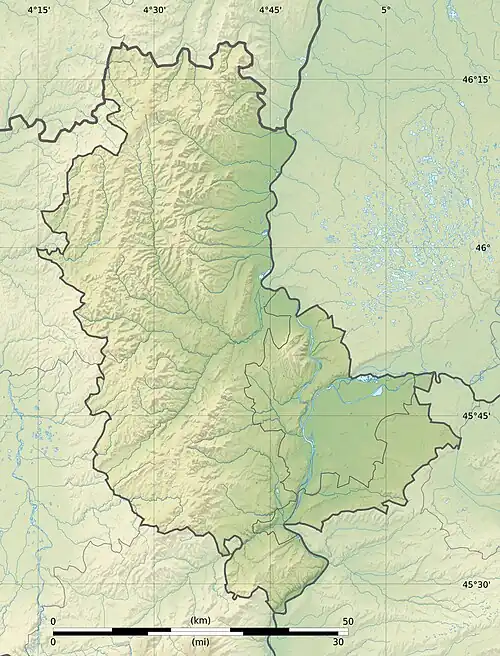 Le département est situé à un carrefour géographique. Il constitue la haute vallée du Rhône, la ville de Lyon se situant à la confluence entre la Saône et le Rhône. À l'ouest se situe le Massif central, et à l'est les premiers contreforts du Jura.