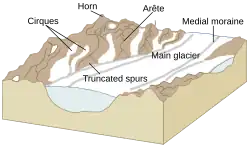Les glaciers remodèlent tout le paysage de façon bien précise, en laissant un paysage de cirques, de moraines. Ce remodelage est aujourd'hui très visible puisque peu ancien (seulement 10 000 ans).